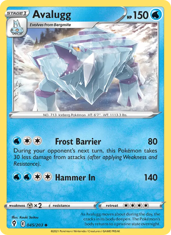 As Avalugg moves about during the day, the cracks in its body deepen. The Pokémon's body returns to a pristine state overnight.