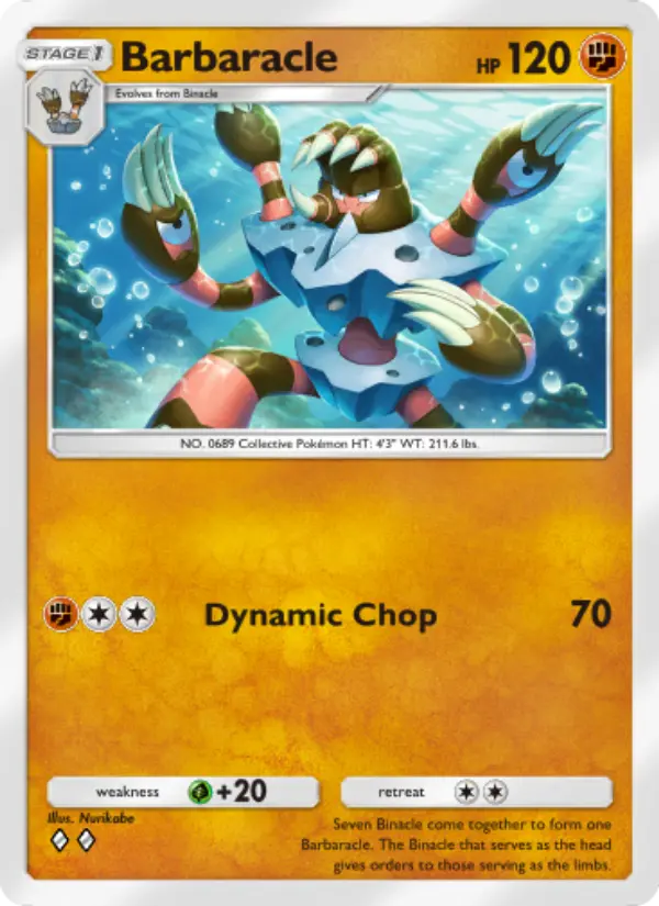 Seven Binacle come together to form one Barbaracle. The Binacle that serves as the head gives orders to those serving as the limbs.