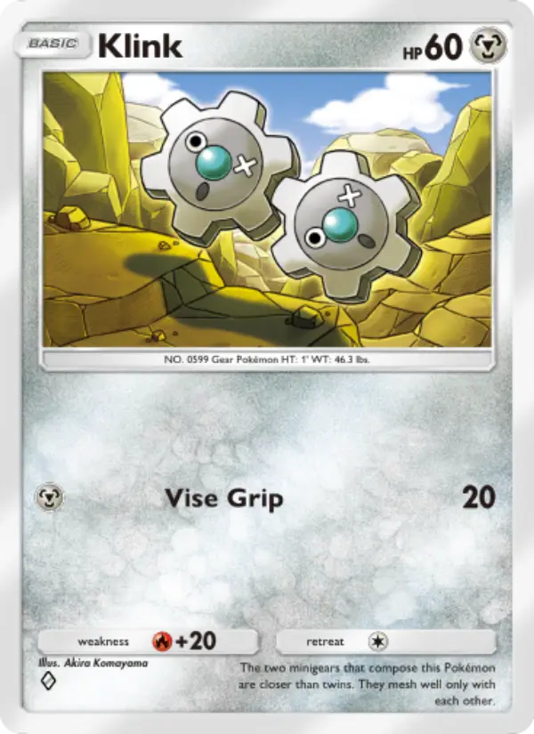 The two minigears that compose this Pokémon are closer than twins. They mesh well only with each other.
